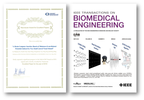 据了解,IEEE生物医学工程汇刊(TBME)今年曾以五月份封面论文(May 2018 issue cover image article)形式报道了天津大学神经工程团队的研究成果《微小偏侧化视觉刺激诱发下的极微弱事件相关电位脑-机接口系统》(A brain-computer interface based on miniature event-related potentials induced by very small lateral visual stimuli),文中提出了一种全新的微弱脑电特征提取技术,在国际上首次突破了1μV以下脑电特征的高效提取与应用。同时,该成果也被EMBS学会官方网站选为Feature Story,予以新闻特写和深度报道。(编辑 赵习钧)