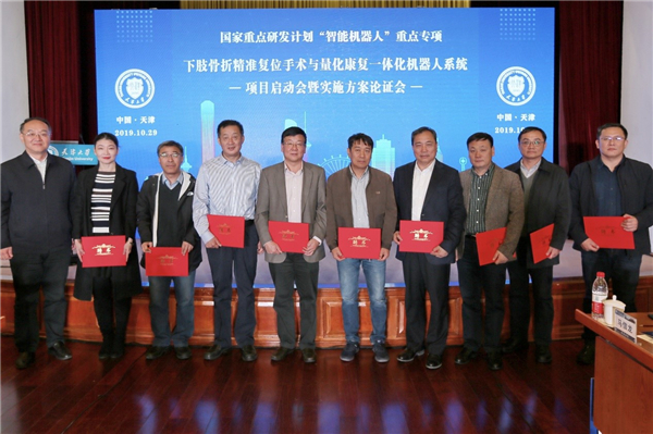 “下肢骨折精准复位手术与量化康复一体化机器人系统”项目于2019年6月立项,项目总经费2341万元,其中中央财政专项经费1341万元,项目研究团队由天津大学、天津医院、南开大学、中国科学院自动化研究所、中国人民解放军总医院等8家单位组成。项目围绕骨科医疗对机器人技术的重大需求,实现下肢骨折精准复位与量化康复一体化机器人系统设计,建立医疗机器人系统操作规范和行业标准。
