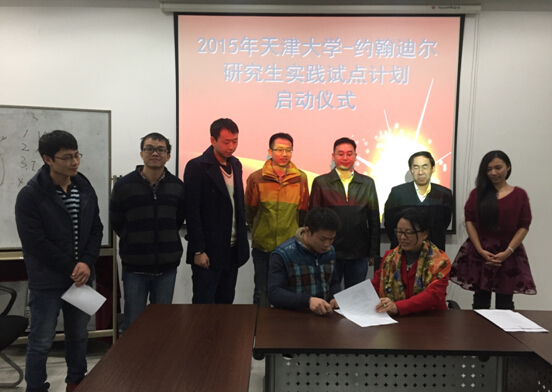 约翰迪尔公司张宏岩经理介绍了天津大学与约翰迪尔公司多年来的战略合作历史,约翰迪尔公司设立创新中心的初衷以及本次实践实习计划的培养理念等,并给试点实践同学指出了具体实践课题方向和导师团队,同时也解答了同学们的疑惑。人力资源的单??经理从具体操作层面介绍实习工作的运行模式,工作待遇,劳动保护和交通伙食补助等。最后,张经理代表约翰迪尔公司与四位试点研究生分别签署了实习协议,协议签订后,四位研究生将奔赴约翰迪尔公司开展实习实践活动。