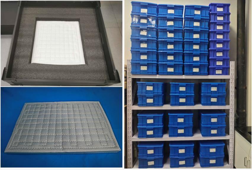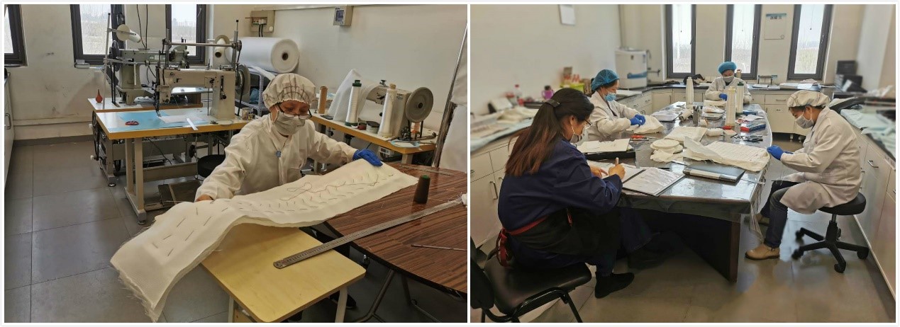 为了做好飞行器的隔热外衣,课题组自主研发了自适应棉芯成型工艺,实现了大尺寸异形复杂件一次成型。相比于科学研究的钻坚研微,产品生产更需要严谨高效,而严峻的疫情无疑对原本就紧迫的生产任务雪上加霜。为了配合学校的防疫管理要求,刘家臣教授开私家车到校门口交接运送原料;搬运工人不能进校,他就和课题组成员一趟一趟卸车搬货;人手紧缺,他甚至把同为本校教授的妻子也叫来帮忙。为了在规定时间内保质保量地完成任务,他们几乎每天都要加班到晚上10:00以后,自开工以来还没有正式休息过。除了五加二白加黑,从模具加工到产品组装,每个人都身兼数职。实验室里,大家戴着口罩和手套忙碌地工作。尽管少了往日的喧闹,但默契和互相关爱并没有减少,谁的任务提前完成了就马上去帮助别人,一切工作有条不紊,井然有序。