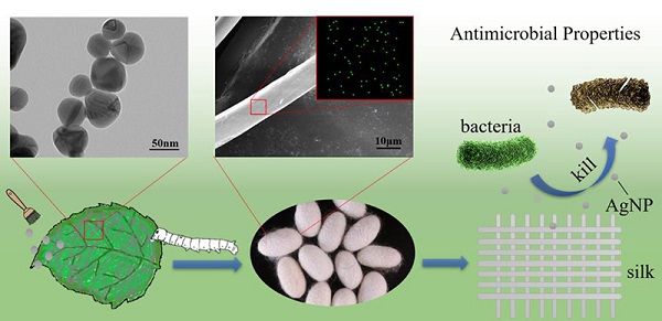 本站讯(通讯员 李莎)自古以来,丝绸作为一种质地柔软、色泽光丽的天然纺织品,广受人们的喜爱。中国是蚕丝的发源地,从古老的“丝绸之路”到今天的“一带一路”,养蚕缫丝是我国对世界物质和文化文明的重要贡献。蚕丝因其具有优异力学性能、生物相容性和生物降解性,近年来逐渐应用于组织工程、生物医用材料等领域。为了进一步改善蚕丝的性能和提高其应用价值,需要对天然蚕丝进行改性,增强其力学性能、抗菌性能、抗黄变性等。目前,蚕丝改性方法主要有物理改性法、化学改性法、基因改性法及添食育蚕法等。作为一种新兴方法,添食育蚕法具有操作简单、无后续处理、可大规模生产、绿色环保的优点。近年来,该方法在喂食有机染料获得彩色蚕丝,以及喂食纳米材料获得性能增强蚕丝方面取得了一定的进展。纳米材料可赋予蚕丝新的功能,但纳米材料尺寸、物理及化学因素对改性蚕丝的影响,及其在体内的生物分布、代谢过程等尚不清楚。通过研究纳米材料的性质对家蚕及蚕丝的影响,有利于深入了解纳米材料在生物体内的作用机制进而提高其利用率及应用价值。