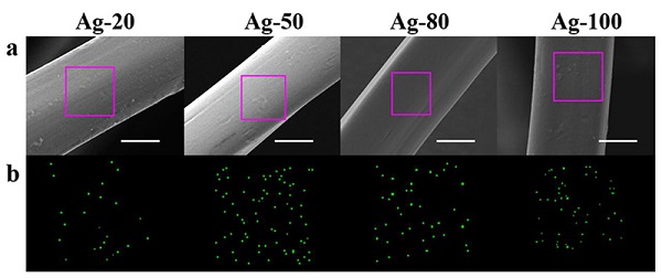 图2. 不同粒径纳米银修饰的蚕丝中银的含量和分布情况