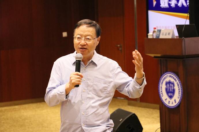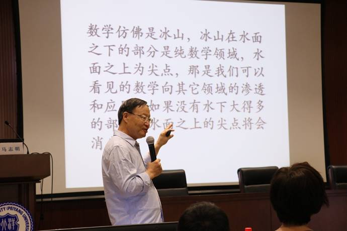 最后,马志明以浮在水中的冰山比喻纯数学与应用数学及数学各种应用的关系,并勉励大家要不畏艰难,不惧时间,用十年磨一剑的毅力去探索数学新高峰。在场师生跟随着马志明院士的思路,在他风趣幽默、通俗易懂的讲解下,从古至今,由远及近,深刻体会到了数学在现代文明中的重要作用,坚定了刻苦钻研数学的信心和决心。