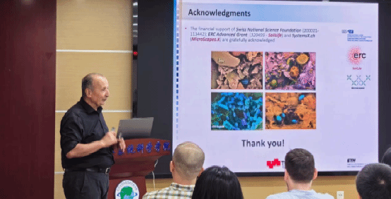 在研讨会上,Dani Or院士以《土壤细菌群落规模分布的一般规律》为题作开场报告,报告阐释了土壤细菌种群的群落规模分布及其相互作用距离,指出土壤细菌群落规模分布遵循吉布拉特定律,这一发现可为在完全充气土壤条件下,建立大细菌团簇启动缺氧代谢的条件提供依据,对于在后续研究中理解细菌群落的空间分布模式,解析微生态交换与功能至关重要。