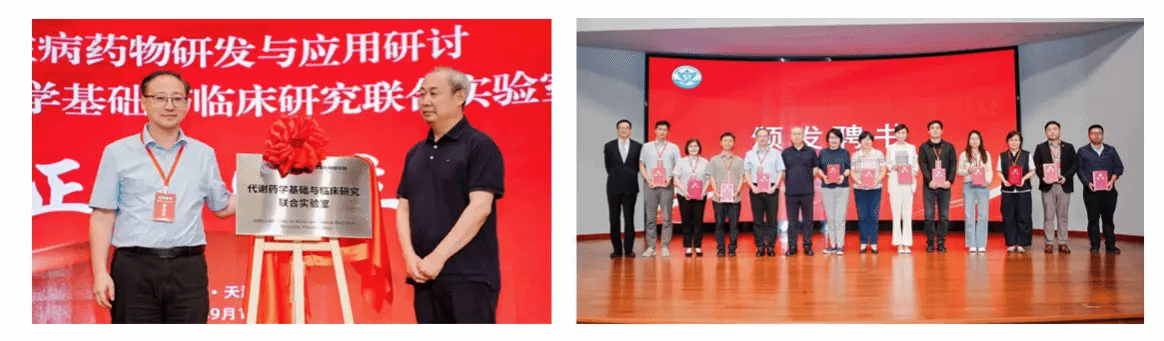 大会召开前夕,9月19日晚,代谢药学专业委员会召开委员大会,专委会主席、天津大学医学部药学院优秀院友、朱宪彝纪念医院药学部主任赵振宇做专委会年度汇报,并宣读增补委员名单。“代谢药学基础与临床研究联合实验室”正式揭牌成立,标志着代谢药学在产学研协同创新方面迈出关键一步。天津大学医学部药学院院长刘秀云教授、党委书记吴晶教授受聘为专业委员会成员,进一步强化了学院在代谢药学领域的学术参与度和责任担当。