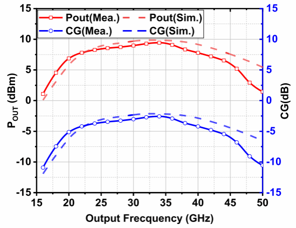 该工作以“A 19-to-45 GHz High-Efficiency Frequency Doubler Using Multi-Port Darlington Cell With Fundamental and Second-Harmonic Pole-Stagger in 55-nm CMOS”为题发表,第一作者为博士生杨震,通讯作者为孟凡易教授,马凯学教授。