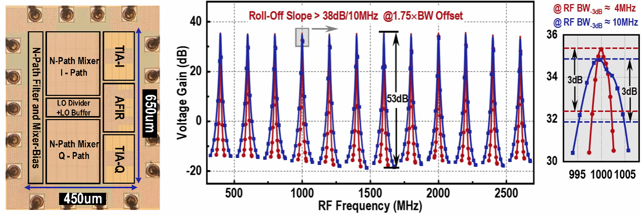 成果四:Sub-6GHz宽带可重构抗阻塞射频接收机芯片