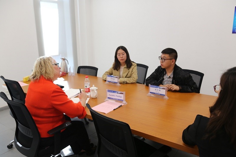 最后,Phillips女士与学院学生进行座谈,2015级英语专业的刘子琦、周笑瑜向专家介绍了相关情况。她问两位学生作为天津大学的学生是什么感觉,周笑瑜介绍了学校丰富多彩的校园活动并结合自身法学双学位谈到了学校的双学位教育,刘子琦介绍了学校的新利18网址登录