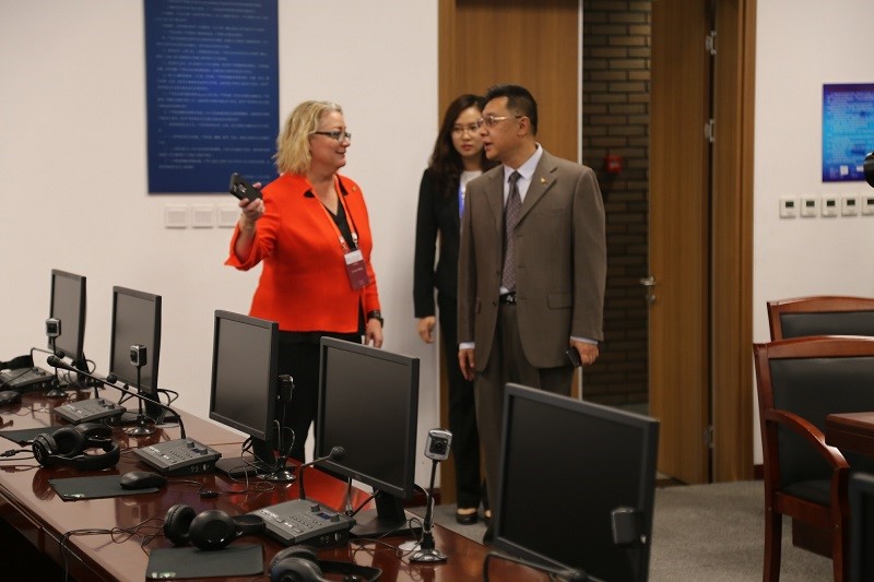 首先,院长李旭带领Phillips女士参观了学院春晖园、高级语音实验室、同声传译实验室,她赞扬学院环境优美,教学条件优越,文化氛围浓厚。