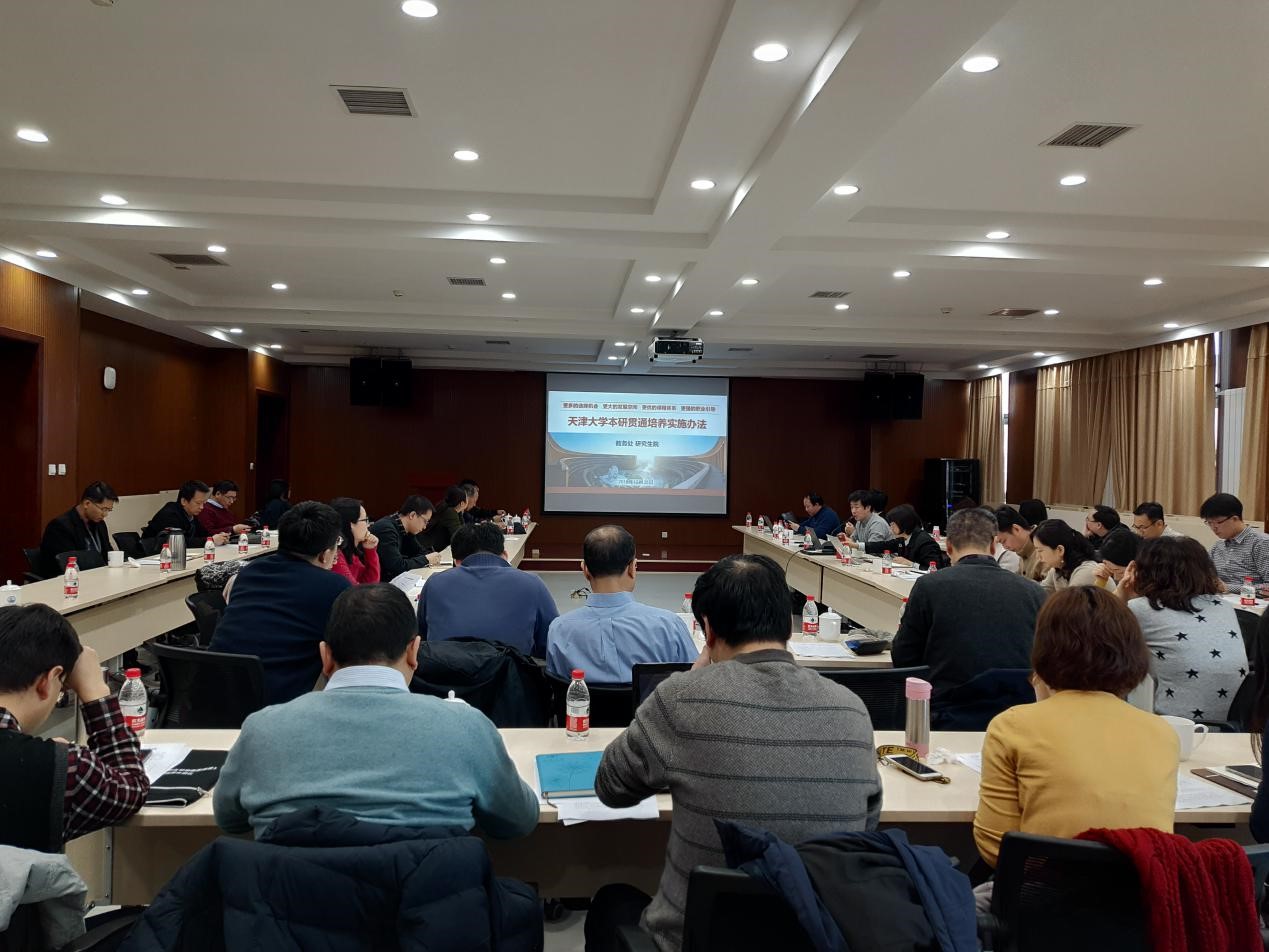 本站讯(通讯员 车熙)为贯彻落实党的十九大关于高等教育的重要表述和全国教育大会精神,推进学校人才培养模式转变,加大拔尖创新人才选拔力度,提高人才培养质量,学校于12月25日上午、27日下午在北洋园校区50楼会议室召开了两场本研贯通培养和跨学科招收推免研究生工作系列研讨会。会议由教务处副处长原续波、研究生院培养办公室主任齐崴、研究生院招生办公室主任孙鹤共同主持。各学院(部)教学副院长、研究生副院长、学生代表、校团委、研究生院、教务处相关工作人员出席会议。