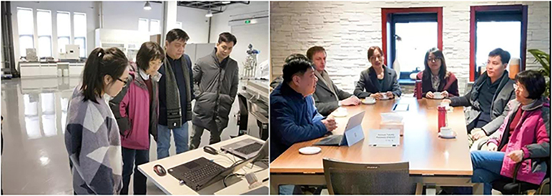 揭牌仪式之后,卫宏远教授带领各位来宾参观介绍研究院,并就研究院的发展规划进行了汇报。卫宏远教授向诸位来宾展示了研究院一年来的发展和取得的成就,齐崴和范晓彬建议研究院在坚持创新研发的同时,要积极利用其在国际合作和新利18网址登录