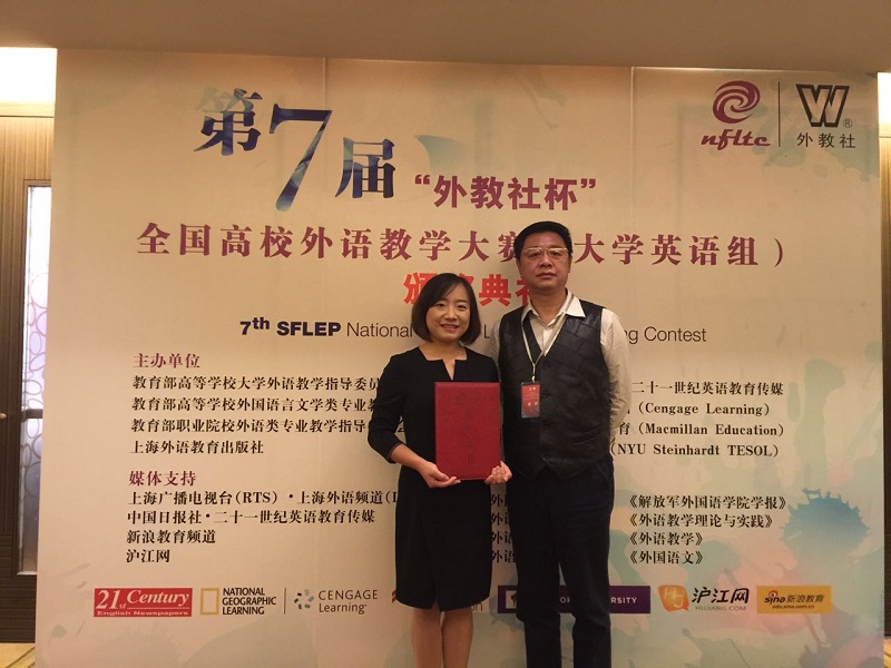 本站讯(通讯员 霍培)日前,第七届“外教社杯”全国高校外语教学大赛全国决赛在上海举行。从全国1000多所高校脱颖而出的58位各省分赛区冠军选手角逐中国大学英语教学的最高奖项。我校教师刘蕾荣获听说课组全国决赛三等奖,展示了我校英语教师的讲课风采。