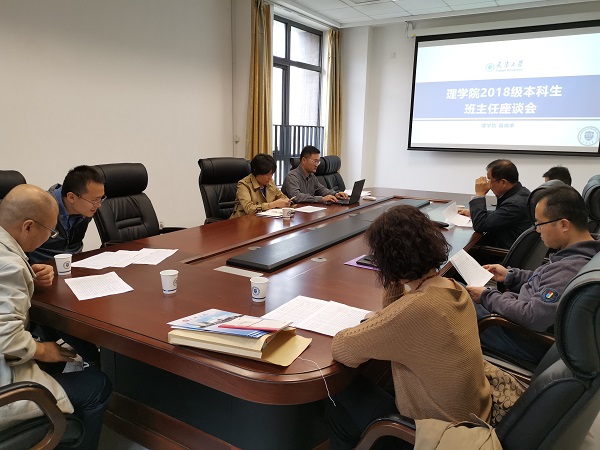 本站讯(通讯员 聂炳荣)2019年10月11日下午,理学院2018级本科生班导师班主任工作会于32教219会议室召开。会议由理学院党委副书记王作金主持,班导师雷圣宾、李志青,班主任冯霞、胡适、刘新军、罗昊以及辅导员聂炳荣参会。