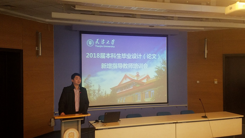 本站讯(通讯员 张诗阳))11月29日,教务处组织召开2018届本科生毕业设计(论文)新增指导教师培训会,全校首次指导毕业设计(论文)的教师参加培训。本科教学督导委员会副主任张世昌教授、经管学部毕业设计(论文)优秀指导教师吴懿进行专题讲座,教务处处长巩金龙出席并致辞,会议由教务处副处长贾果欣主持。各学院(部)共计70余名教师参加培训。