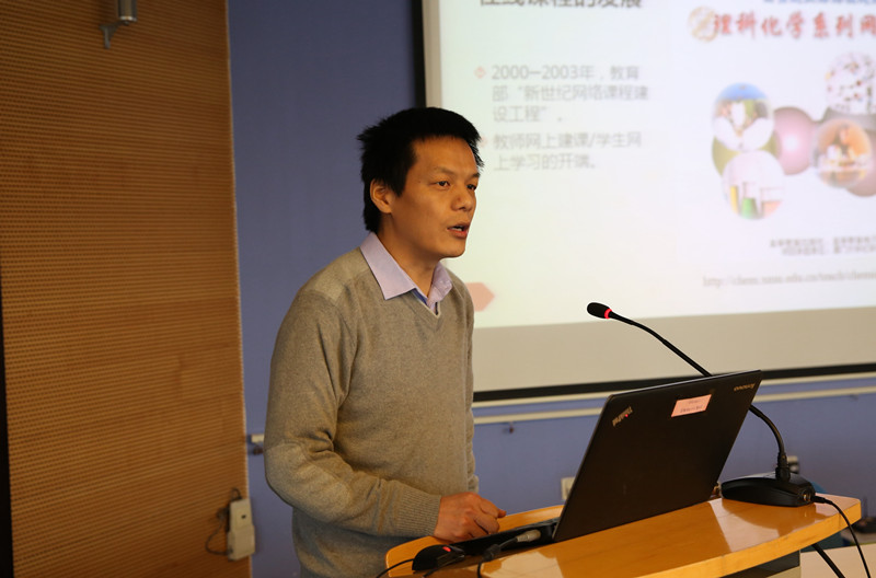 无机化学在线课程群建设课题负责人、大连理工大学胡涛老师作了题为《在线开放课程的建设、维护和使用》的报告,包括如何设计在线开放课程、课程制作的方式方法、课程的上线及维护、在线开放课程资源在教学中的使用等内容。“优质MOOC需要进行深度设计和精心制作,我们要以学生为中心,利用在线开放课程群资源开展生动的课程教学,推动教学改革和创新人才培养。”