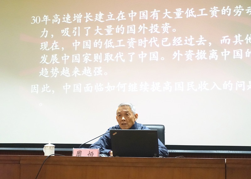 报告伊始,周恒院士首先分析了“创新”一词出现频率越来越高和国家提出“要增加知识价值为导向的分配政策”的原因。他说,“我国虽是世界制造业第一大国,但人均收入水平在世界上仍排名靠后,造成这种现象的原因之一便是我们国家在很多领域的关键技术上还缺乏自己的知识产权,不少重要技术仍依赖进口。”