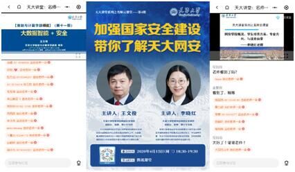 中心发挥学部专业特长,与天大招生办通过腾讯课堂直播“加强国家安全建设、带你了解天大网安”系列讲座。学部网络安全学院两位副院长为广大考生、学部学生详细介绍国家安全、信息安全重要性与天大网络安全学科建设情况,提升广大学生国家安全意识。