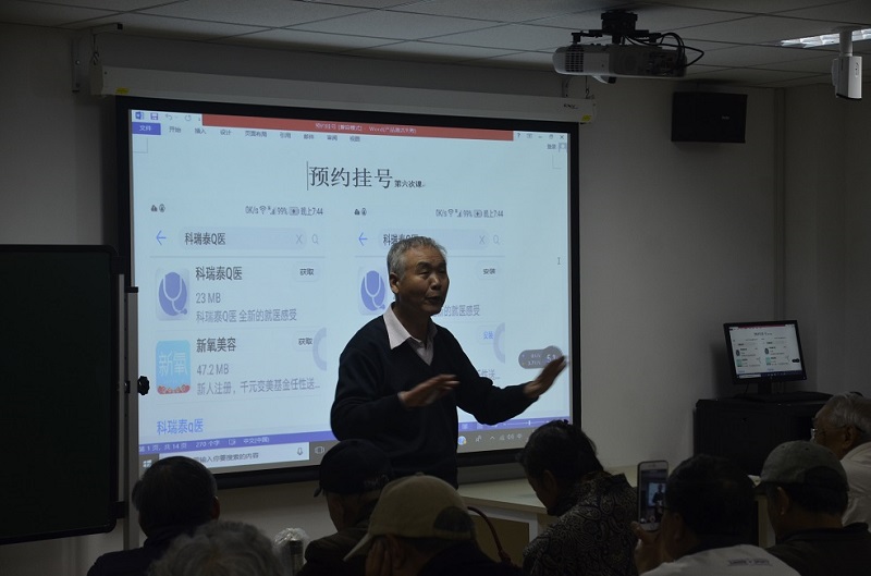 本站讯(通讯员 李春意)为改善医疗服务质量,提升患者就医感受,天津市卫生计生委启动医疗服务百日行动。天津多家医院取消人工挂号窗口,完全实现自助挂号。为让老同志顺利掌握天津市各大医院网上挂号系统的使用,4月13日,离退休工作处联合老年活动中心邀请唐多强教授在老年活动中心B219室带来一场题为《如何用手机预约挂号》的讲座。