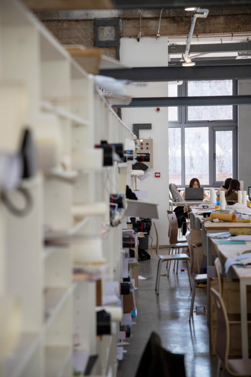 教室内的家具设计处处体现老师们的良苦用心。“教室没有围墙,我们用家具做区域分割,一层公共通道两旁是1.6米高的储物柜,让每个空间有相对独立的围合感,这是站起来垫个脚就能看到隔壁的高度,但坐下来则是一个比较私密的空间。大空间之中的小分区内的家具高度则只有1.2米,是为了让所有同学坐着的时候也能看到窗外的风景。与一层相比,二层以大一为主,考虑到新生需要更多的交流,特地没有设置高柜。为让同学们抓住随时可能降临的灵感,教学楼四壁还设置了许多可以涂鸦的金属白板,累了、烦了还可以用来解压。”郑颖把以学生为中心、以教学为中心落实到每个细节中,做到每一张书桌都能看到窗外的风景,公共区还有一架学院合唱队赢得的钢琴。