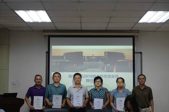会上,在各班班主任做了简要的自我介绍后,由王海龙为到场的班主任颁发了聘书。精仪学院2018级本科生按照“精仪与光电信息类”大类+“光电信息科学与工程(天南大合办)”专业方式进行招生,入院后目前共有15个大类班级和1个专业班级,在学生入校迎新教育周期间,还将面向15个大类班级选拔产生工程科学实验班。