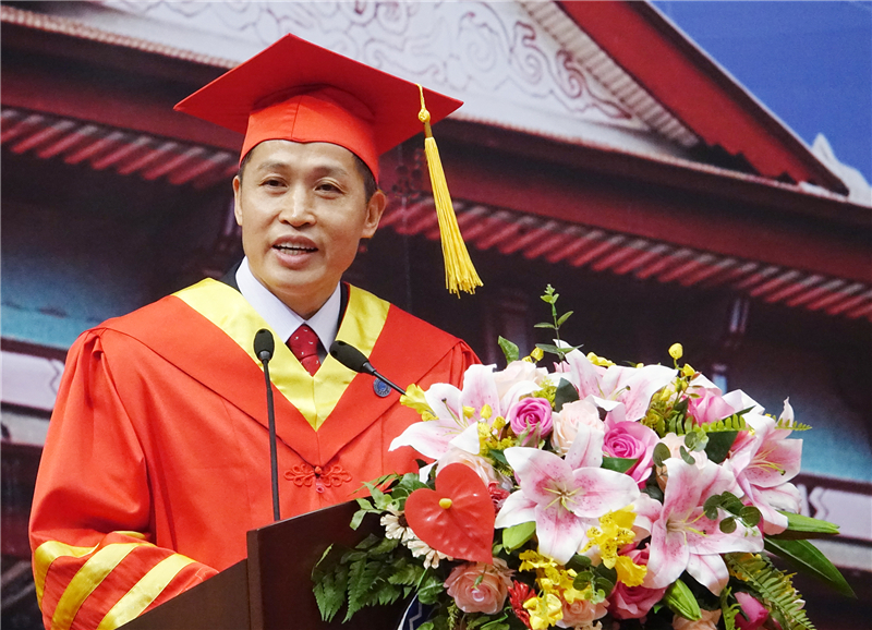 王书新鼓励毕业生们要主动设计自己的人生道路,“仰望星空,脚踏实地,服务社会,服务大众。去创造辉煌的成就,以栋梁之才回报国家。”
