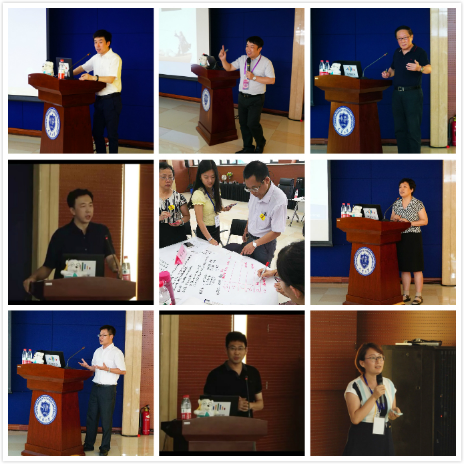 会议特邀上海交通大学慕课研究院院长助理余建波教授带来精彩报告。余教授将慕课设计理念与实践相结合,带领大家体验在线开放课程设计的全过程。与会教师进行分组讨论,每组遴选一门课程加以设计。从课程名称到课程目标,从教学计划到教学环节,小组成员集思广益,一门门精彩的教学设计跃然纸上。