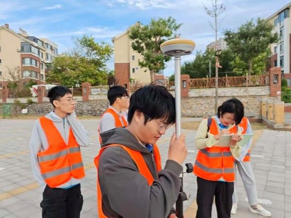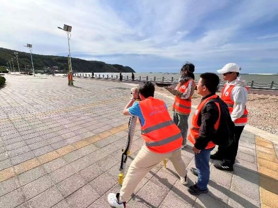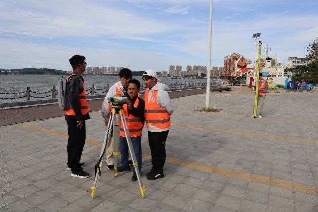 第二天,天气放晴,学院党委书记单小麟带领老师和同学们来到旅顺世界和平公园开展岸上测量工作。共分为潮位观测、水准测量、碎部测量和航空摄影测量四个部分。