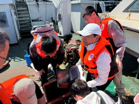 随着船只缓缓驶出港口,同学们各就各位,开始了紧张而有序的工作。温盐深仪缓缓沉入海中,等深度记录温度、盐度、深度等数据;多波束测深系统则精确测量海底深度和描绘海床地形特征。