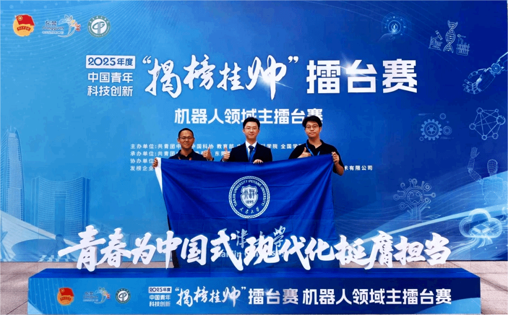 本站讯 10月10日至12日,第十九届“挑战杯”全国大学生课外学术科技作品竞赛框架下的2025年度中国青年科技创新“揭榜挂帅”擂台赛机器人领域主擂台赛在广东东莞举行。依托机构学与机器人系统实验室,由天津大学孙涛教授、天津市天津医院刘忠玉主任、南开大学人工智能学院马涛助理研究员联合指导,基于新工科项目制课程作品,我院机械工程系硕士研究生赫连乾则团队《四自由度全周期踝关节康复机器人系统》项目斩获特等奖。
