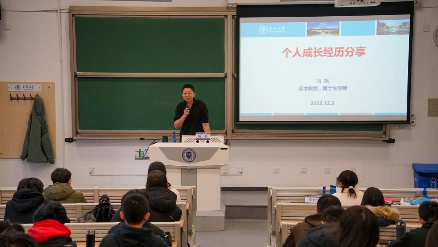 随后进行的开班第一课,学院院长助理、英才教授、博士生导师冯枫老师为学员们带来了题为 “个人成长经历分享” 的精彩讲座。冯老师结合自身求学经历,分享了他在专业学习、新利18网址登录