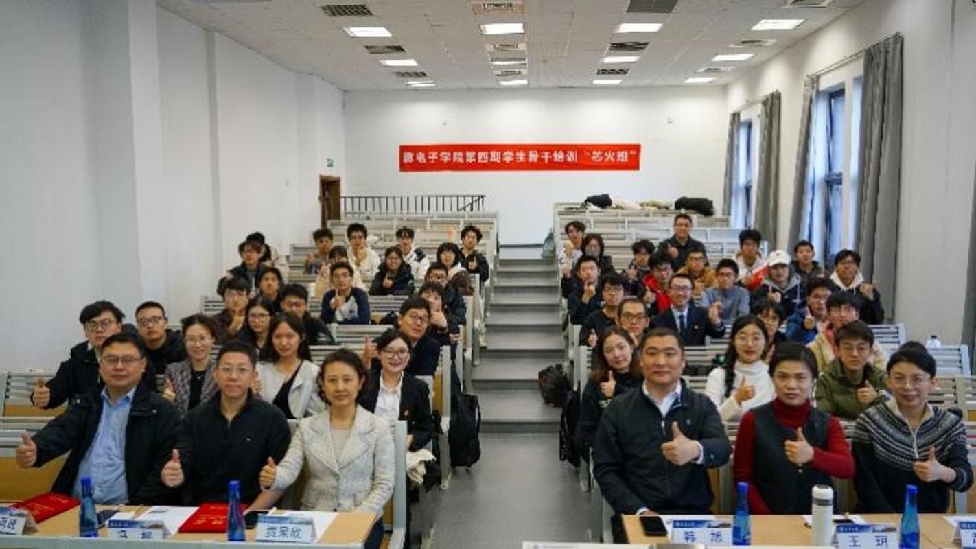 随后,第四期“芯火班”学员代表王若竹上台发言。她表示,“芯火班”是学院为青年骨干搭建的成长平台,承载着“强芯报国”的学科使命与时代责任。她代表全体学员郑重承诺:将以饱满的热情投入学习,严守纪律、互学互鉴,并将所学转化为服务同学、推动集体发展的实际行动。