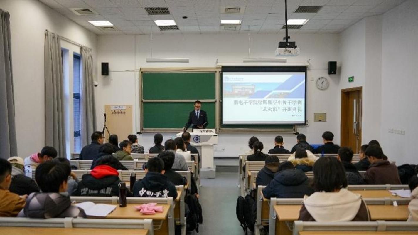 为深入学习贯彻习近平新时代中国特色社会主义思想与党的二十届四中全会精神,贯彻习近平总书记给天津大学全体师生重要回信精神,持续推进青年马克思主义者培养工程走深走实,着力完善学生骨干培养体系,提升学生骨干的思想引领力、实务执行力与创新开拓力,培养更多胸怀“国之大者”、兼具红色基因与科技素养的微电子青年领军人才,2025年12月5日,微电子学院第四届学生骨干培训“芯火班”开班典礼在北洋园校区33楼186室顺利举行。学院党委书记贾果欣、党委副书记韩旭、院长助理冯枫,王玥、云阔、赵雪、程思璐、于洋、史再峰等教师代表以及往届优秀学员代表、本期全体学员共同出席本次仪式。