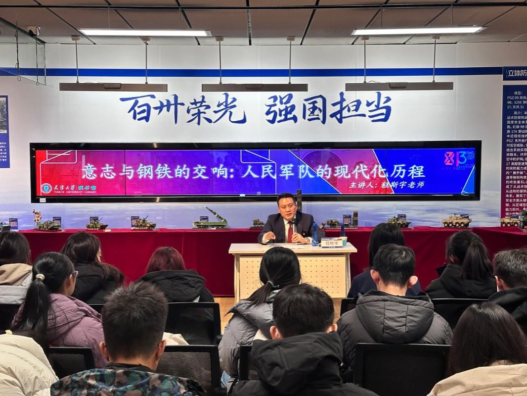 2025年12月12日下午,天津大学图书馆第七届新技术体验周曁“微阅兵·铸剑强国”军事模型主题展在郑东图书馆新技术体验区开幕。本次活动是在纪念中国人民抗日战争暨世界反法西斯战争胜利80周年背景下,进一步贯彻落实习近平总书记关于加强全民国防教育的重要论述,弘扬爱国主义精神,激励天大学子秉承“兴学强国”使命,牢记习近平总书记给全体师生回信的殷殷嘱托,聚焦国家重大战略需求,在科技报国的道路上笃行不怠。
