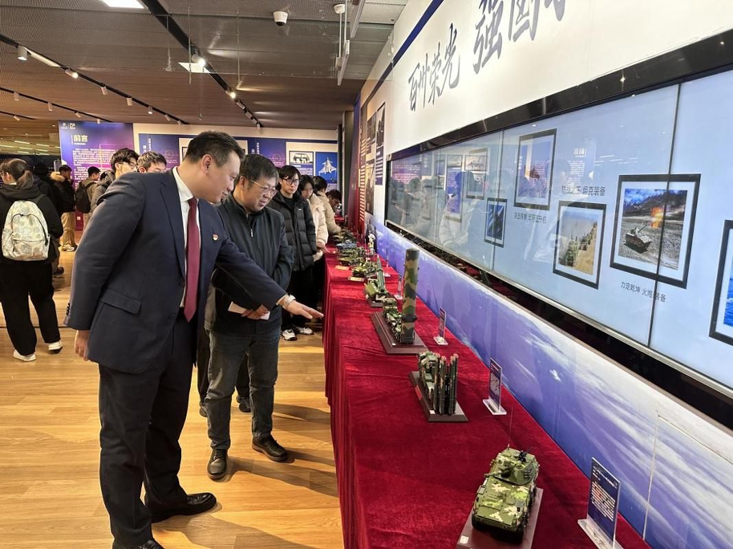 开幕式结束后的展览现场,师生们驻足观看、交流讨论,在方寸模型间感受科技强军的澎湃动力,体悟“铸剑强国”背后的家国情怀与“实事求是”的校训精神。不少学生表示,展览不仅是一次视觉体验,更是一堂深刻的国防教育课。