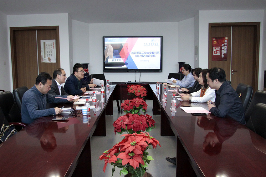 4月18日上午,浙江工业大学教育科学与技术学院院长吴向明、副院长王永固、副院长胡斌武、学科建设办公室主任刘晓一行到访学院。学院在321会议室召开交流座谈会,院长闫广芬、副院长夏军、教育管理系主任王梅出席。