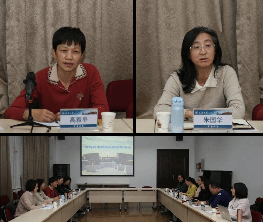 在座谈交流环节,高雅平简要介绍了天津财经大学工会工作开展情况,朱国华简要介绍了天津财经大学教师工作部工作开展情况,双方与会人员围绕工会改革、调动教职工积极性、青年教师培养发展、教代会提案、福利发放等问题进行深入交流。