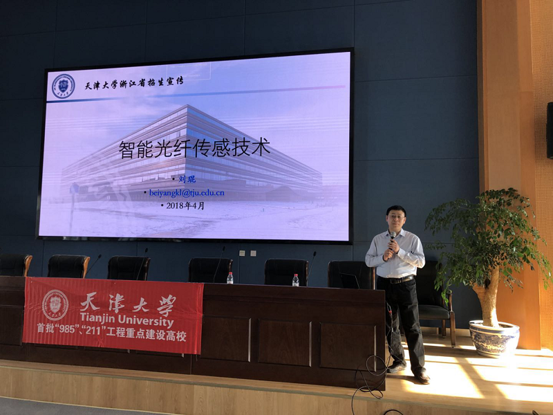 科普报告后,刘琨从天大与浙江的渊源、2018在浙招收专业、印象天大几方面向在座同学们系统介绍了天津大学,并重点介绍了天津大学近年来在浙招生情况和2018年天大招生政策的变化,讲解了天津大学的大类招生选拔机制和本硕博贯通人才培养机制,鼓励优秀高中生报考天津大学相关专业。