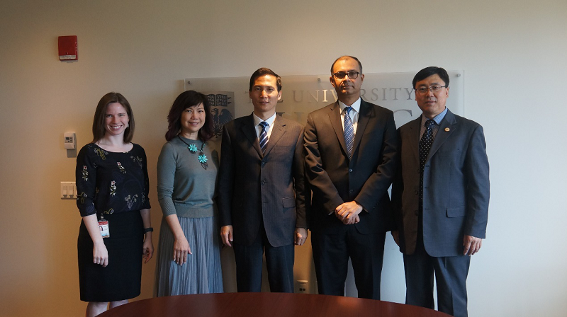 本站讯(通讯员 魏有香)4月26日,天津大学校长助理肖松山率团访问了美国芝加哥大学。机械学院副院长陈金龙、国际处工作人员陪同访问。芝加哥大学副校长Bala Srinivasan会见了代表团,芝加哥大学国际部副总监Janice Ng等国际部代表陪同会见。