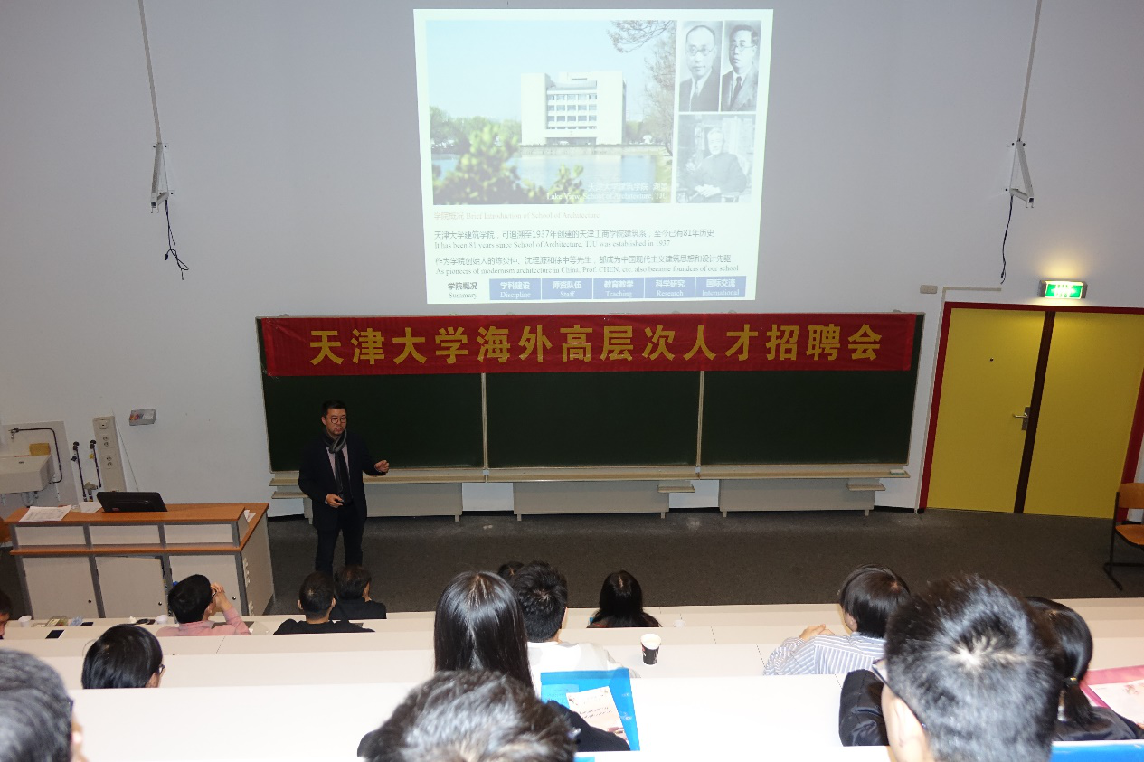 本站讯 2018年11月29日,天津大学事业发展报告会在荷兰格罗宁根大学召开。天津大学代表团由副校长王树新、建筑学院副院长曾鹏、机械学院副院长焦魁、研究生院招生办公室主任孙鹤、人事处副处长栗大超及国际合作与交流处交流科科长魏有香等人组成。本次事业发展报告会由天津大学主办,中国留荷学生学者联合会承办。