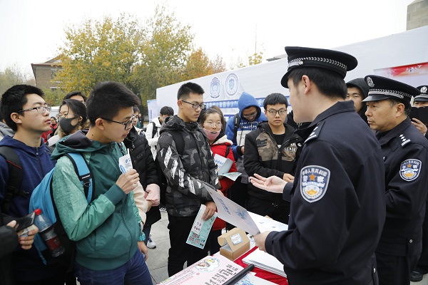 本站讯(通讯员 王冬 李泽鹏 摄影 丁宇)为构建平安和谐校园,提高师生安全意识,营造警民共筑平安的良好氛围,11月15日中午,学校保卫处联合天津市公安局在卫津路校区北洋广场开展“网聚平安•平安高校行”系列宣传活动。此次活动中,民警通过演示讲解、现场互动、样品展示和模拟对抗等表现形式,分别从反恐防暴、识骗防骗、知毒拒毒等方面为师生讲述了生动的一课。