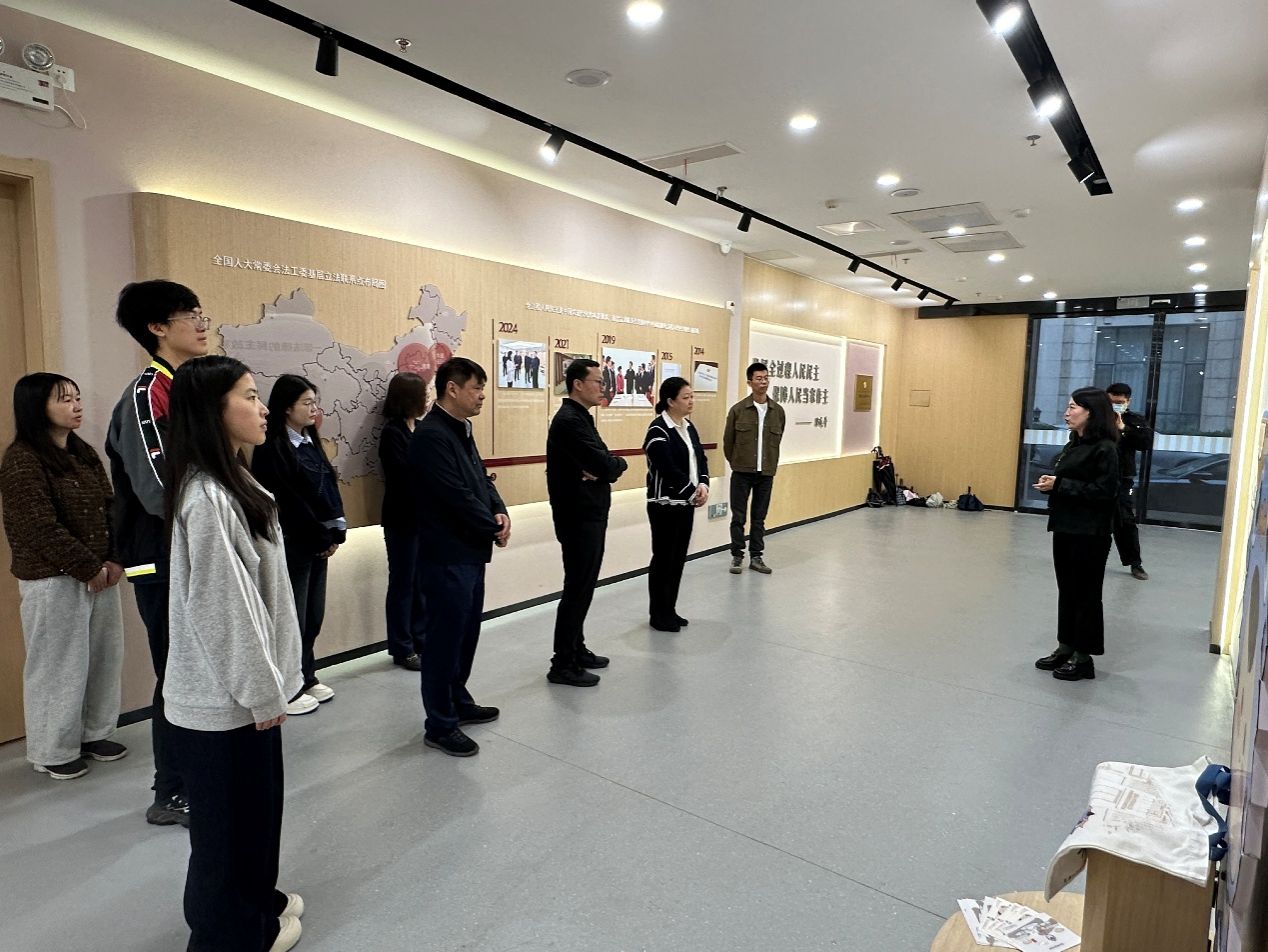 外国语学院的师生们认真听取了小白楼街人大工委办公室主任郭嘉伟对于小白楼街道基层立法联系点的介绍。通过介绍,师生们详细了解了立法联系点的工作内容、功能定位、活动开展以及立法征询等相关情况。在这里,外国语学院的师生们亦真切感受到了“全过程人民民主”是最广泛、最真实、最管用的民主。