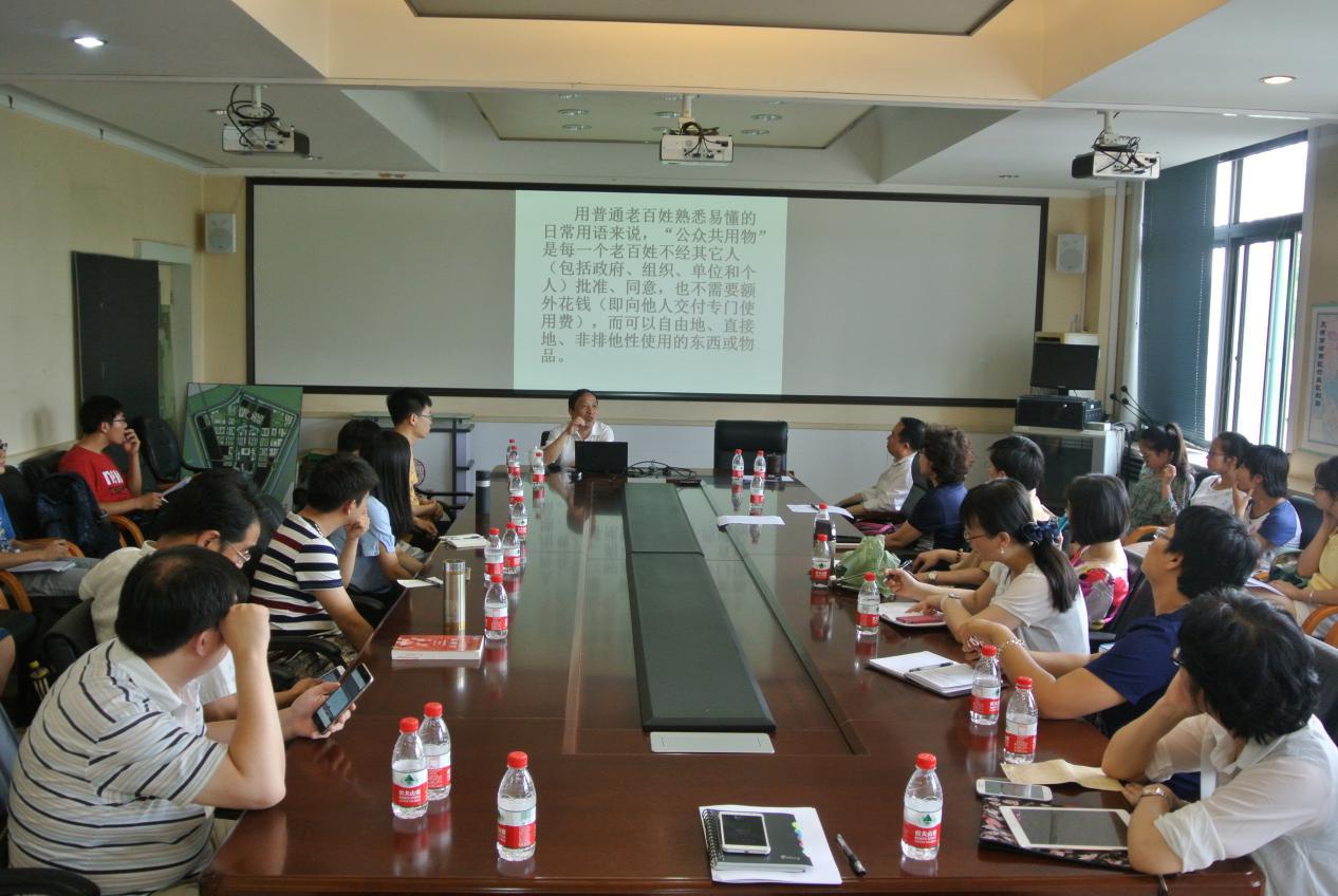 讲座在天津大学第十九教学楼举行,由法学院院长孙佑海教授主持。蔡守秋教授通过对各个国家法典法规的对比剖析,讲解了公共公用物的概念、意义、问题以及治理之道,分析了从民法、行政法到环境资源生态法的法律发展轨迹,并深入分析了我国环境资源与保护法的研究与发展现状。