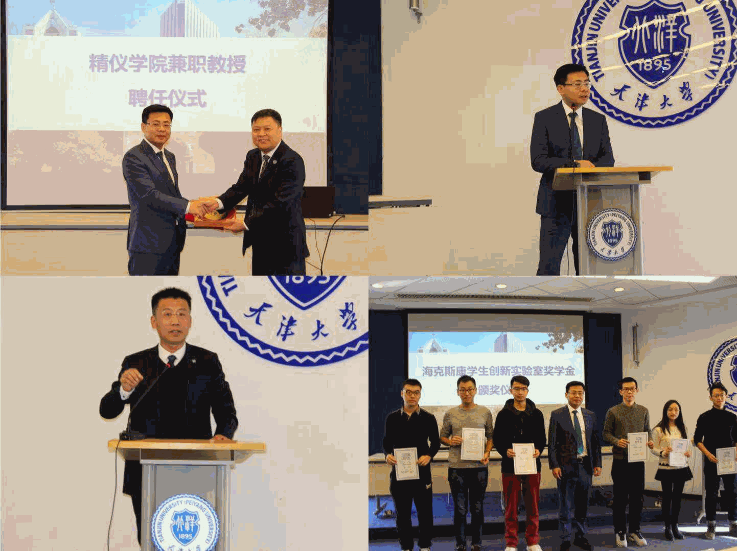 上午10时,精仪学院兼职教授聘任仪式暨海克斯康学生创新实验室奖学金颁奖仪式在我校卫津路校区会议楼第八会议室举行,企业来宾、院系负责人和近百名学生共同参与,学院学生创新创业指导教师单亦鹏主持仪式。