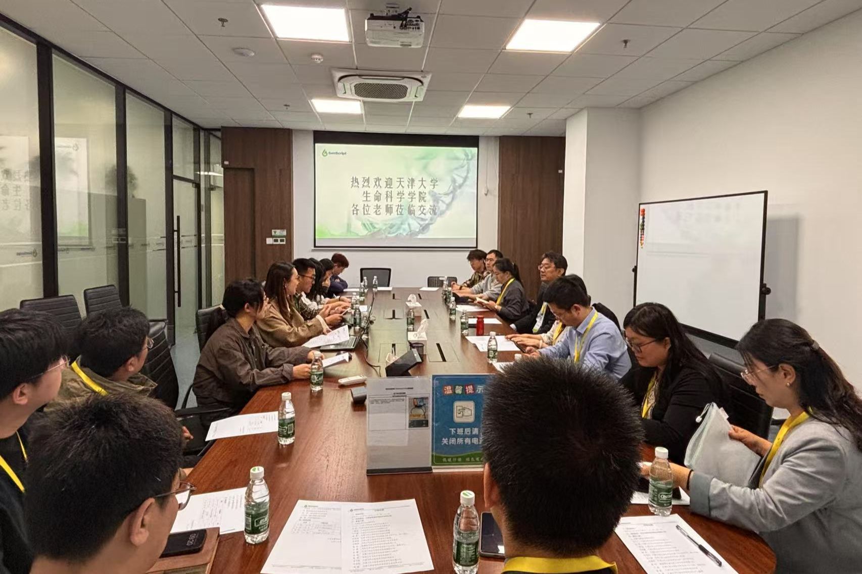 机构提供端到端CDMO服务与创新解决方案。企业方GMP核酸生产部负责人赵禹,我校校友、GMP核酸合成科学家刘书茎,校园招聘负责人康蕾出席调研,并介绍了企业发展情况。牛志广系统介绍了学院整体发展与学科建设情况。双方围绕技术转化与人才引育两大核心议题展开深入交流,针对项目制实训平台搭建及人才联合培养机制等方向提出了初步解决方案。