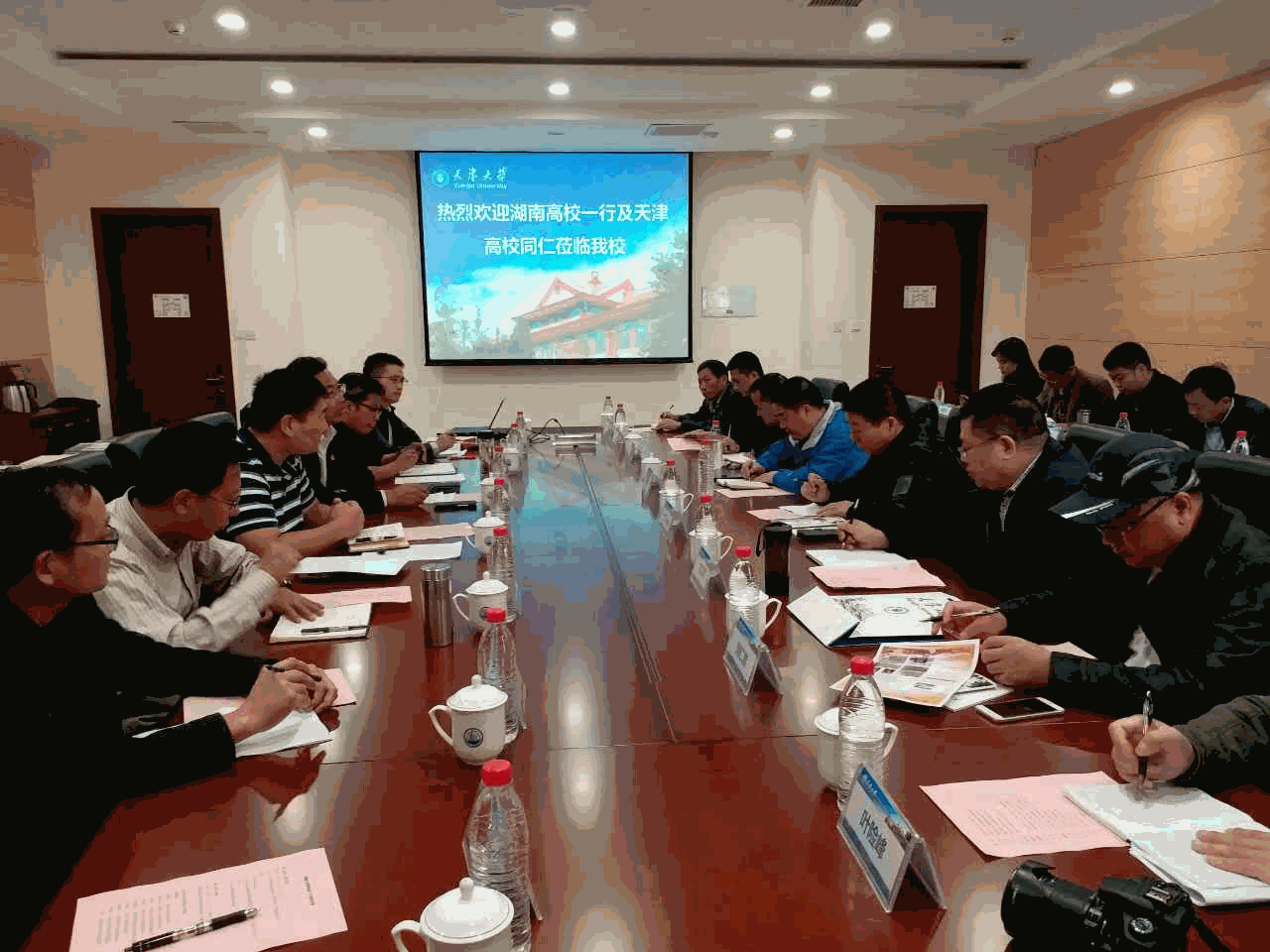 会议开始,湖南大学武装部副部长戴谋元介绍了湖南高校来宾,天津大学学工部副部长、武装部部长柳丰林介绍了与会天津高校国防教育工作负责同志。然后,天津几所高校从国防教育工作的整体理念和特色做法、当前军事理论课教学模式和涵盖的教学内容及提升其教学实效的经验做法;新形势下军训工作的规范化建设情况及巩固军训成果的措施和征兵工作的经验做法四个方面对本校国防教育概况进行了说明。