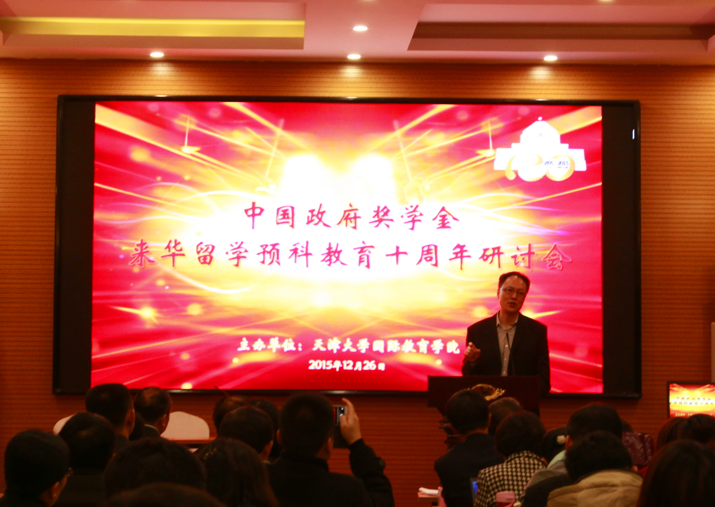本站讯(通讯员 董杰)自2005年承接教育部国际司和国家留学基金委来华留学生预科教育项目以来,天津大学已经走过了十年的辉煌历程。为全面总结预科教育工作经验,促进预科教育工作同仁学术交流与合作,2015年12月26日上午九时,天津大学“中国政府奖学金来华留学预科教育十周年研讨会”在天津海洲国际酒店隆重举行,参会代表九十余人分别来自全国40多所高校。天津大学国际教育学院李锵书记主持会议。会议首先由天津大学校长助理张立新教授致辞。国家留学基金委王胜刚副秘书长代表国家留学基金委致辞,他回顾了我国10年来预科教育走过的历程及取得的成绩,尤为肯定了天津大学在来华预科教育中做出的突出贡献和可喜成绩。贺向民秘书长代表留管学会对天津大学预科教育十周年研讨会表示祝贺。国际教育学院陈志华院长对天津大学预科教育的十年历程和全国预科院校的预科工作进行了生动而细致的回顾,天津大学作为全国预科教育工作首批试点院校十年来积极配合国际司及国家留学基金委,为预科教育做出了很多扎实细致的工作。在总结预科教育规律、扎实完善预科教学、积极推进教材建设,积极参与预科考核等方面成绩显著。近几年更是规模不断扩大,质量不断提升,2015年6月,在全国预科教育结业统一考试中,天津大学预科生参考核通过率为100%,位列全国预科院校第一名。最后,国际司方军副司长做了大会特邀主旨报告。他首先肯定了天津大学预科教育取得的成绩,然后从国家层面分析了我国预科教育形势,对比了我国与国外预科教育之间的差距,提出了应该努力的方向。并要求接受来华留学生的院校积极参与,不断完善来华留学质量体系及考核体系。会议第二阶段,天津大学国际教育学院杜修平副院长做了主题为预科教育新利18网址登录