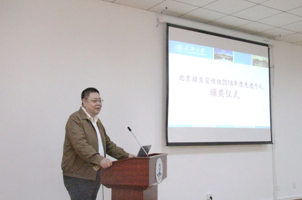 会议中,巩乐首先作北京招生宣传组2018年度工作报告,他分析了2018年度天津大学北京生源质量情况,讲解了北京招生宣传组年度先进个人评选方案,并介绍了北京招生宣传组2019年度工作整体安排。