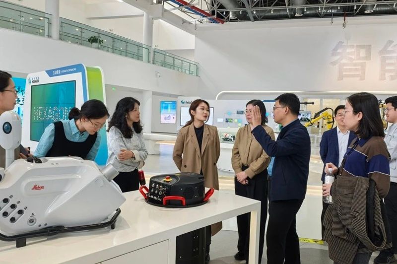 在海克斯康智慧产业园,调研组参观了海克斯康双智赋能中心,海克斯康制造智能技术(青岛)有限公司产学研协同创新中心运营总监王辛影带领工作人员热情接待,详细介绍了海克斯康的发展历程、“智能制造”和“智慧城市”两大领域的发展现状和前沿探索。实地参观后,双方就人才培养、项目合作、校园招聘等进行了深入的座谈交流,为未来多方业务合作奠定了坚实基础。
