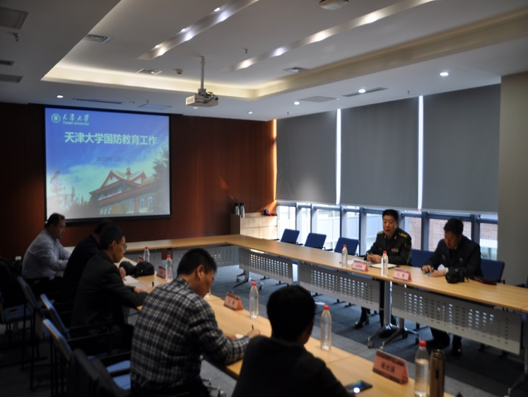本站讯(通讯员 胡彦杰)3月14日下午,南开区人武部政委关慧强一行来我校调研国防教育工作,学工部部长王寒、解放军驻校选培办主任汪命锁、学工部副部长(武装部部长)柳丰林、武装部工作人员及士兵协会与国旗护卫队代表参加活动。活动在北洋园校区杏荪楼B301会议室进行。