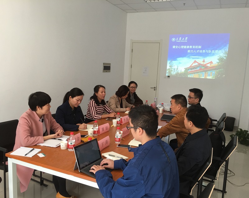本站讯(通讯员 赵亚璁)2016年10月12日,华中师范大学学工部副部长、心理健康教育中心主任、学生资助中心主任王东爽,心理健康教育中心副主任吴才智,心理健康教育中心专职教师孙启武、学生资助中心副主任王涛一行四人来到天津大学,就心理健康教育和学生资助管理两方面工作进行调研与交流。交流会由党委学工部副部长李霞主持,在我校挂职的郑州大学团委书记冀娟、校心理健康教育中心主任杨丽、资助管理中心副主任王作金以及心理健康教育中心部分专职教师共同参与了交流。